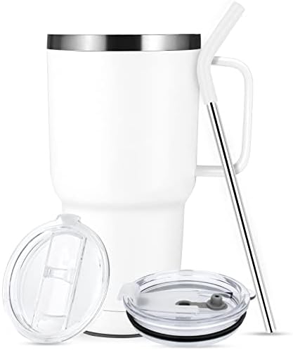 Amazon Com Sursip 30oz Insulated Mug With Lid And Straw Stainless Steel Double Walled Vacuum Cups Keeps Cold Up To 24 Hours Sweat Proof Dishwasher Safe Bpa Free Coffee Mug Travel Cups Car Using Whtie 1pack Tumblers Water Glasses